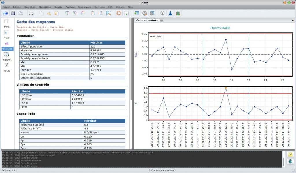 SOSstatHome Software SOSstat SOSstat, statistical analysis applied to industry SOSstat is a statistical analysis software dedicated to industrial applications: it has been specially designed to exploit your data with ease. The many features make it a versatile tool for dealing with design issues, process development, metrological qualification as well as quality improvement. SOSstat performs for you capability studies, control charts, statistical tests, regressions and many useful analyses for manufacturers. It is particularly well-suited for leading a Six Sigma project or other improvement effort. 5 good reasons to use this software Adapted to the needs of the industryEasy to useVery affordableAutomation of your repetitive analysesMeets FDA requirements We very much appreciate Ritme… they guide us to properly choose the solutions and professional answers to the problems submitted by our researchers.Our contacts at Ritme have a main quality: to bringing us answers. Laurent Benvenuti IT Manager – Toulouse School of Economics Why choose SOSstat? SOSstat is thus a production tool, used by operators, technicians, engineers… The objective is to provide a simple tool, adapted to non-specialists in statistics to build and interpret analyses allowing the optimization of products or processes. A versatile tool Because it is intended to be versatile, SOSstat incorporates a huge number of statistical and graphical features to help interpret results and make your data talk. It covers most industrial statistical needs: Fundamental statistics toolboxNumerous graphical representationsRegressions – modelingParametric and non-parametric testsExperimental designsReliability analysisStatistical process control MSP / SPCMetrological validation functionsAnd more… Industry Friendly For over 10 years, SOSstat has been developed to adapt to your needs. It is constantly evolving according to the requirements of its customers and in partnership with its clients.It integrates all the statistical analysis functions that are essential for companies. Very easy to use Analyzing data is not simple. SOSstat is designed to be intuitive, with a simple environment and tools to help interpret results, and to perform your data analysis in just 2 clicks. SOSstat is equally well used by non-statistical tuners looking to understand their production data as it is by experienced engineers. Automating repetitive tasks Without programming, SOSstat allows you to import your data, perform your analyses, create your graphs and automatically generate your reports. These reports can then be exploited in your word processing tool to be saved. You can customize these reports as a template to reuse them to perform your repetitive analyses. With just one click, you can then rerun all your analyses as well as generate your results report. Compatible and open SOSstat is offered on 3 different platforms : Microsoft Windows, Linux and MacOS, and in 3 different languages : French, English and German. SOSstat has a lot of possibilities to import your data before analysis: Acquired from your instruments, live, via a serial link,Imported from files in various formats .txt, .csv, .dat, …Manually entered,Extracted from many databases (Oracle, Access…). Your analysis results can then be exported to .doc, .html or .pdf formats for distribution. Meets FDA requirements SOSstat was developed to meet FDA 21 CFR Part 11 regulations validation, interoperability, data durability and security are assured. In fact, SOSstat is based on a non-proprietary .xml data format (unlike JMP or Minitab) that ensures data perennity. The files can be – at choice – open (.sos3 format) or encrypted. Features Statistics Descriptive statisticsNormality testsSingle and multiple regressionParametric and nonparametric testsProportion testsEquivalence testsDetecting outliersStatistical intervals Quality Statistical process control : control charts, capability study, tooling validation, etc.Reliability : failure laws, etc.Metrology : capability study of measurement means, etc.Experimental plans Graphs BoxplotHistogramsPareto2D and 3D graphsRadar graphsEtc. Operations Import / export : .txt, .csv, .xls, databases, USB port, serial port, etc.Filtering / sorting Starting from (excl tax) Prices Please ask our sales team Log in to see all prices Ask for a demo Download trial version Discover other software products from our catalog Go to top